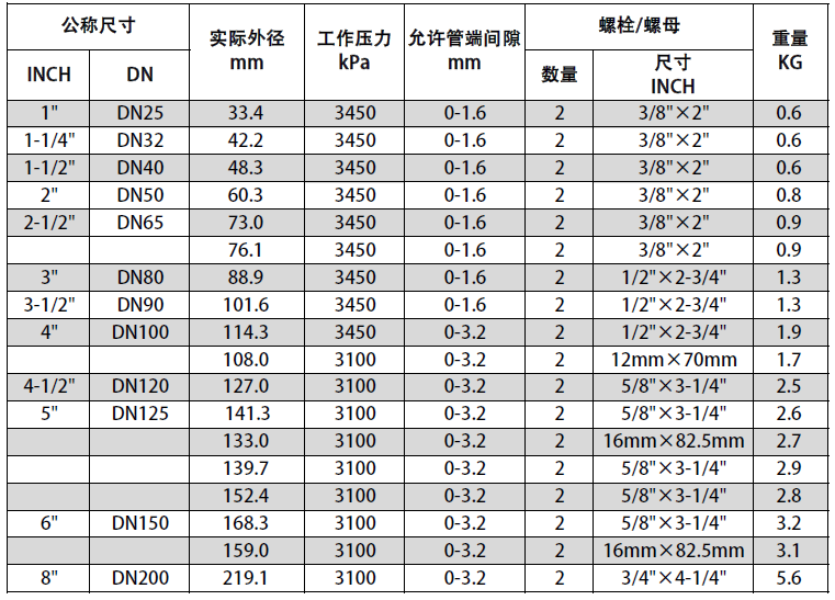 • 用于连接标准滚槽和切槽管道以及沟槽管件、阀门和附件。