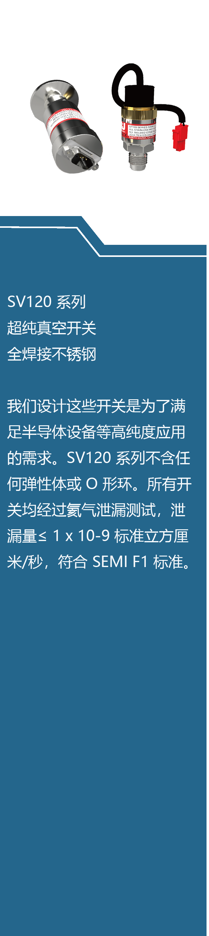 | 自 1989 年以来,行业领先的客户一直依赖 SV120 系列的可靠性和性能。该系列采用全不锈钢传感器和全焊接结构。SV120 系列采用了 Wasco 专有的制造方法,消除了所有泄漏路径。该系列是处理腐蚀性介质的完美开关,具有高精度和严格的公差。 |